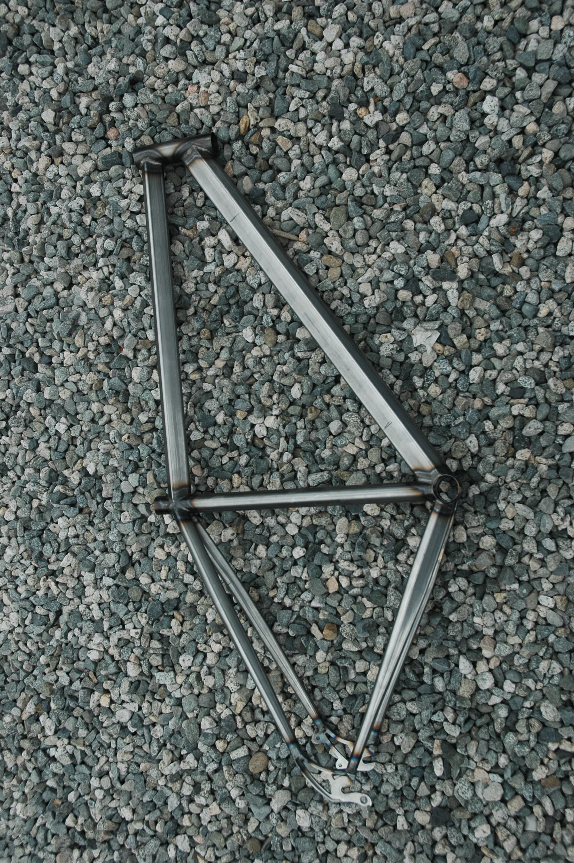 To get adequate clearance for a 2" tire a 73mm BB was used. The chain stays were dimpled on the inside and both chain and seat stays were curved.